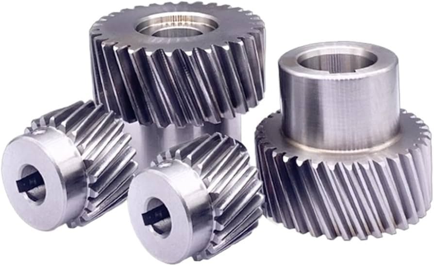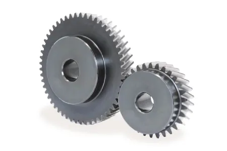 Left- and right-hand orientation helical gears made from hardened materials for strength and accuracy.