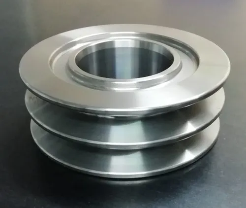 Precision-machined pulley used in V-belt systems for consistent power transfer.